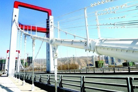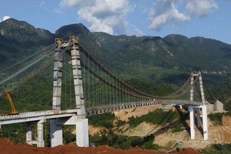 Inner Mongolia Lulin Bridge is a reinforced concrete suspension bridge with 90m main span and both s…