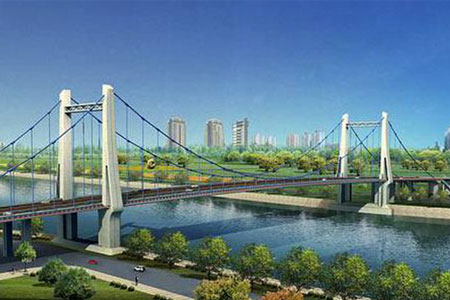 Shaoyang Guihua Bridge is a double-tower and three-span self-anchored suspension bridge with 120m ma…