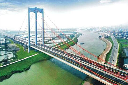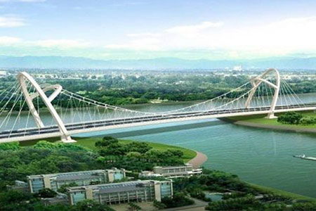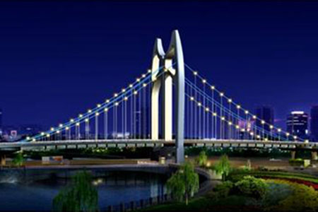 杭州江東大橋又稱錢江九橋,大橋全長(zhǎng)4332.5米,大橋設(shè)計(jì)新穎,其中三跨空間纜自...